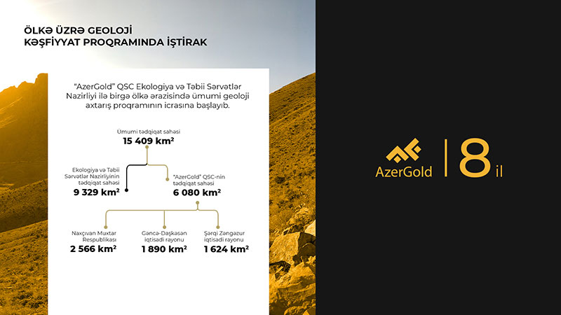 QSC-nin yaydığı məlumatda bildirilir ki, Ekologiya və Təbii Sərvətlər Nazirliyi ilə birgə icra olunan proqram 15409 km2 ərazini əhatə edir. “AzerGold” QSC-nin tədqiqat sahəsi isə 6080 km2-dir:
