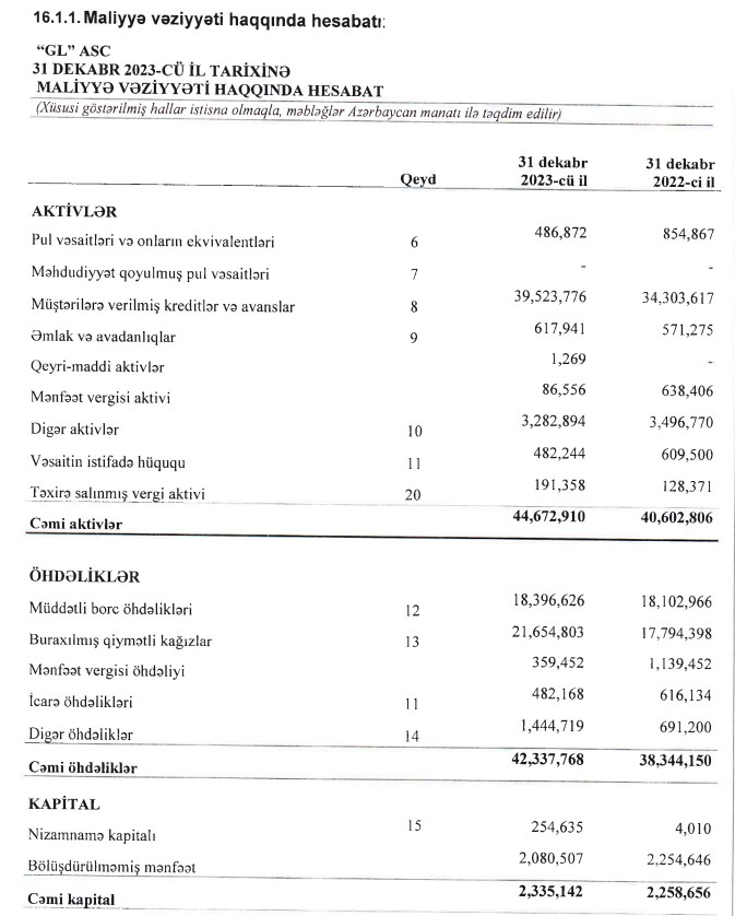 Ötən il ərzində "GL" ASC-nin cəmi aktivləri isə 40 milyon 602 min manatdan 44 milyon 673 min manata yüksəlib.