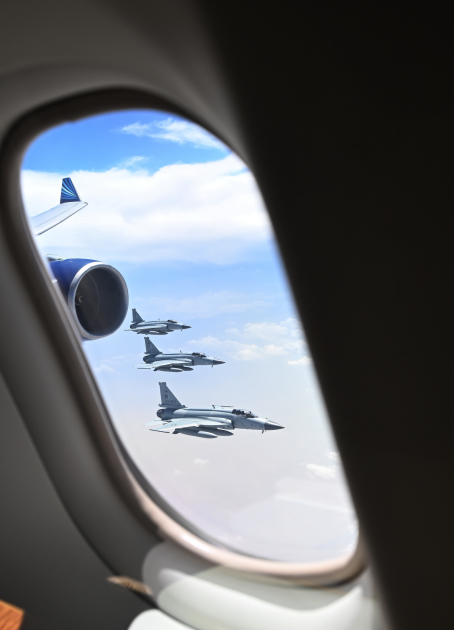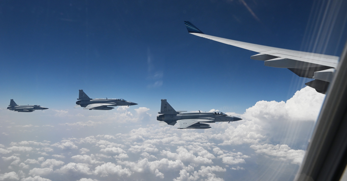 Azərbaycan Prezidentinə xüsusi hörmət əlaməti olaraq dövlətimizin başçısının təyyarəsini Pakistanın hava məkanında bu ölkənin Hərbi Hava Qüvvələrinin qırıcı təyyarələri qarşılayıb və enənədək müşayiət edib.