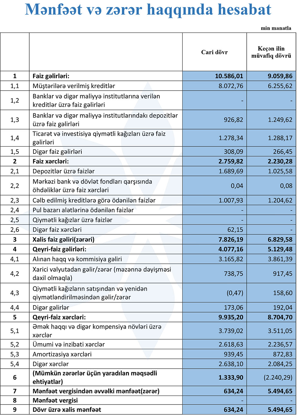 Həmçinin, ilk 6 ayda "AFB Bank" əməliyyat mənfəətindən 1 milyon 334 min manat mümkün zərərlər üçün yaradılan məqsədli ehtiyatlara ayırıb. 2023-cü ilin eyni dövründə ehtiyatlardan azad olan 2 milyon 240 min manat mənfəətə əlavə olunmuşdu.