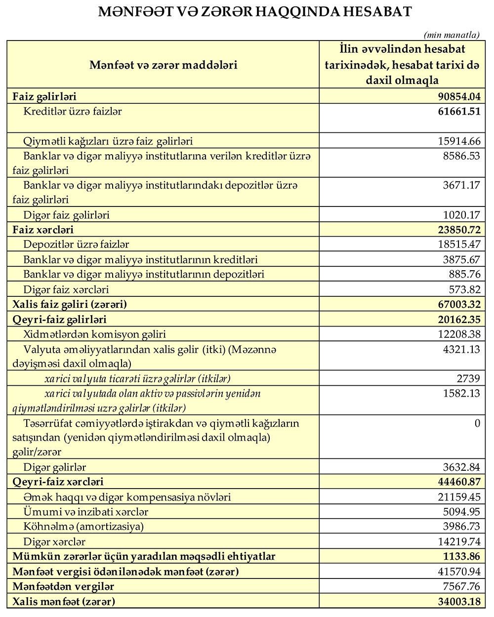 Müqayisə üçün qeyd edək ki, 2023-cü ilin eyni dövründə ehtiyatdan azad olmuş 2 milyon 592 min manat Bankın mənfəətinə əlavə olunmuşdu və mənfəət vergisi ödənilənədək mənfəəti 41 milyon 570 min manat təşkil etmişdi.
