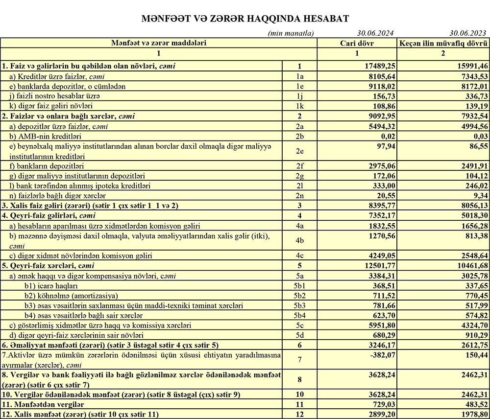 Həmçinin, ilk 6 ayda mümkün zərərlər üçün yaradılan məqsədli ehtiyatdan azad olan 382 min manat mənfəətə əlavə olunub. 2023-cü ilin eyni dövründə ASB əməliyyat mənfəətindən 150 min manat ehtiyata ayırmışdı.