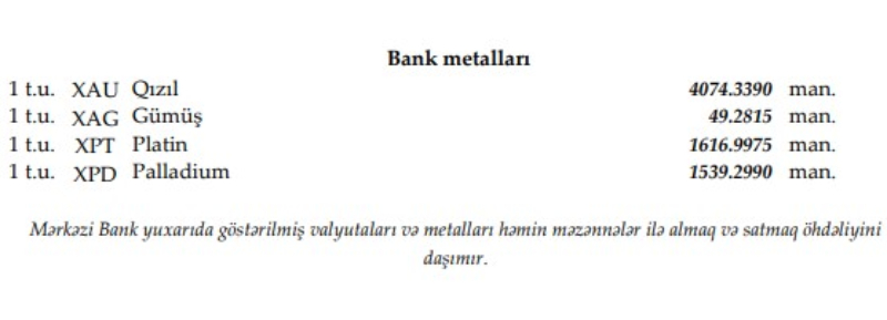 Rəsmi məzənnələr açıqlandı