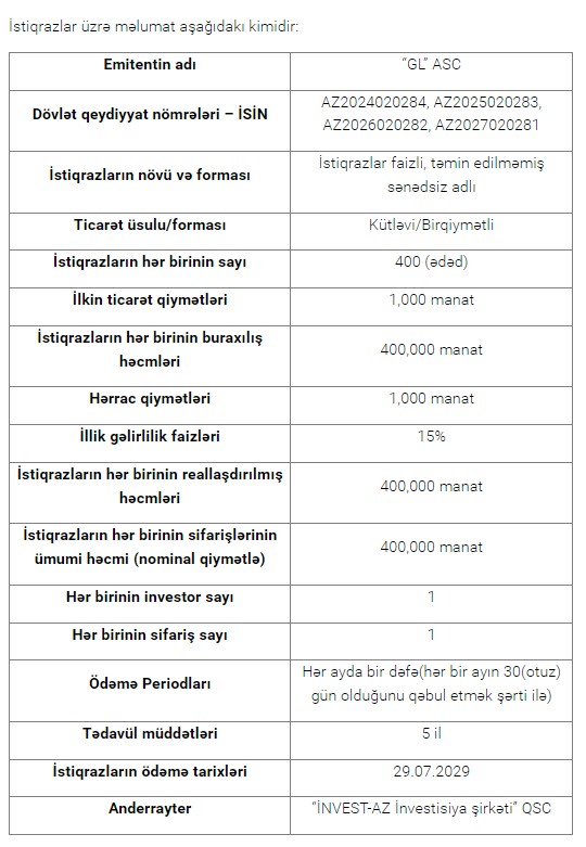 “GL” ASC-nin istiqrazları yerləşdirilib - HƏRRACIN NƏTİCƏSİ