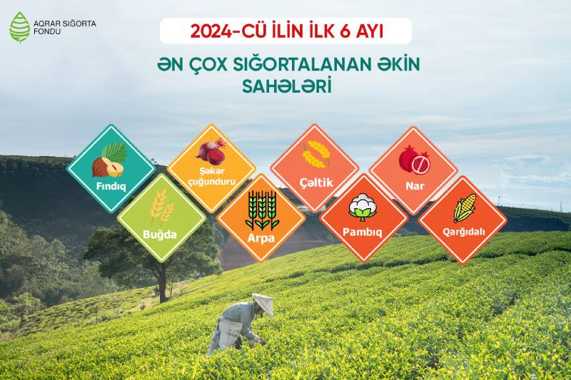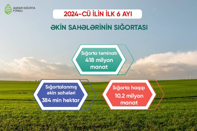 2024-cü ilin yanvar-iyun aylarında 11 milyon 183 min manat aqrar sığorta haqları toplanıb. Bu vəsaitdən 10 milyon 189 min manatı bitkiçilik sığortası üzrə ödənilib və əkin sahələrinə ümumilikdə 418 milyon manat sığorta təminatı verilib.