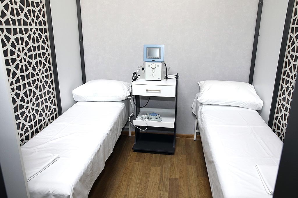 Məlumat verilib ki, mərkəzdə 100 nəfərlik 2 dördmərtəbəli yataq korpusu var. Bütün otaqlar kondisioner, televizor, soyuducu, seyf, fen və xalatlarla təchiz olunub. Eləcə də burada ittifaq üzvlərinin rahat dincəlməsi üçün istirahət guşələri də mövcuddur. Mərkəzin ərazisində ikimərtəbəli müalicə korpusu da var ki, bunun da birinci mərtəbəsində yeməkxana zalı, ikinci mərtəbəsində müalicə və müayinə kabinetləri yerləşir. Qapalı hovuz da istirahət edənlərin istifadəsindədir. Həmçinin müxtəlif beynəlxalq və yerli tədbirlərin keçirilməsi üçün nəzərdə tutulan zalda hər cür şərait var.