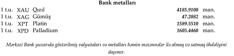 Rəsmi məzənnələr açıqlandı