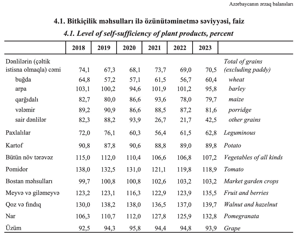 "Azərbaycanın ərzaq balansları" statistik məcmuəsi ilə ətraflı buradan tanış ola bilərsiniz.