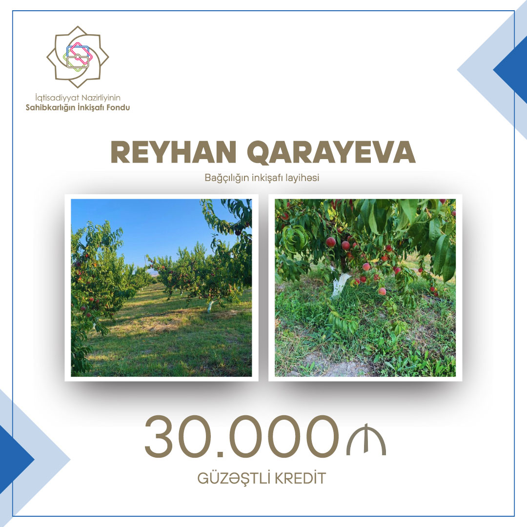 Sahibkar Reyhan Qarayeva Sahibkarlığın İnkişafı Fondundan 30 min manat güzəştli kredit əldə edib.