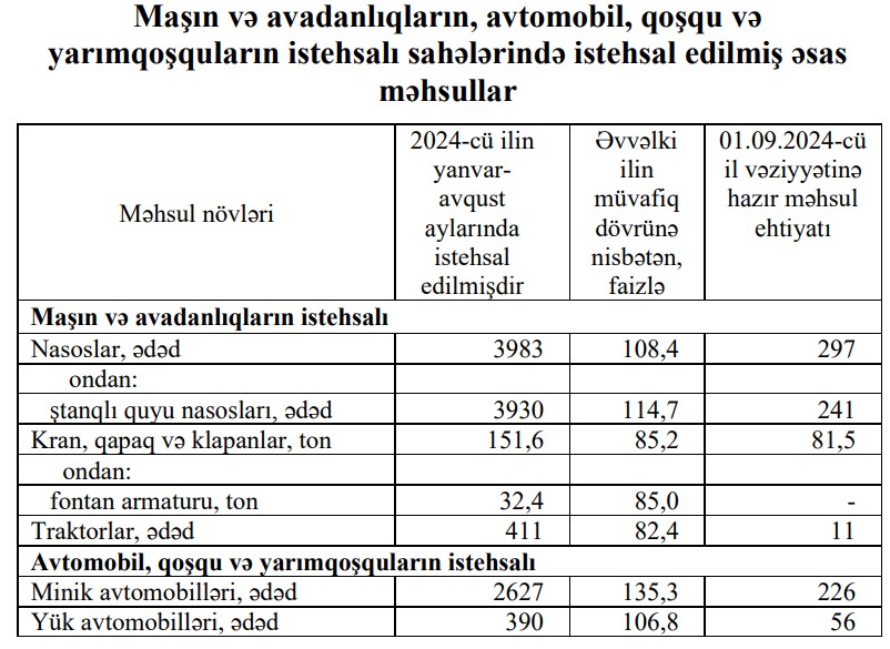 Yük avtomobillərinin istehsalı isə 6,8% artaraq 390 ədəd təşkil edib.