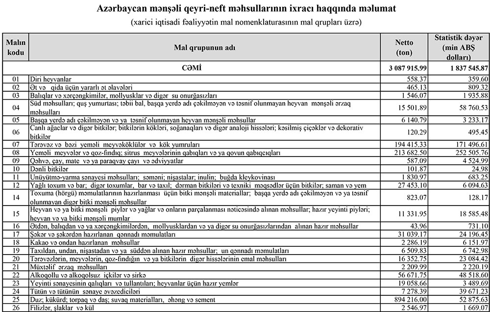 Azərbaycanın ən çox ixrac və idxal etdiyi mallar - YENİ SİYAHI