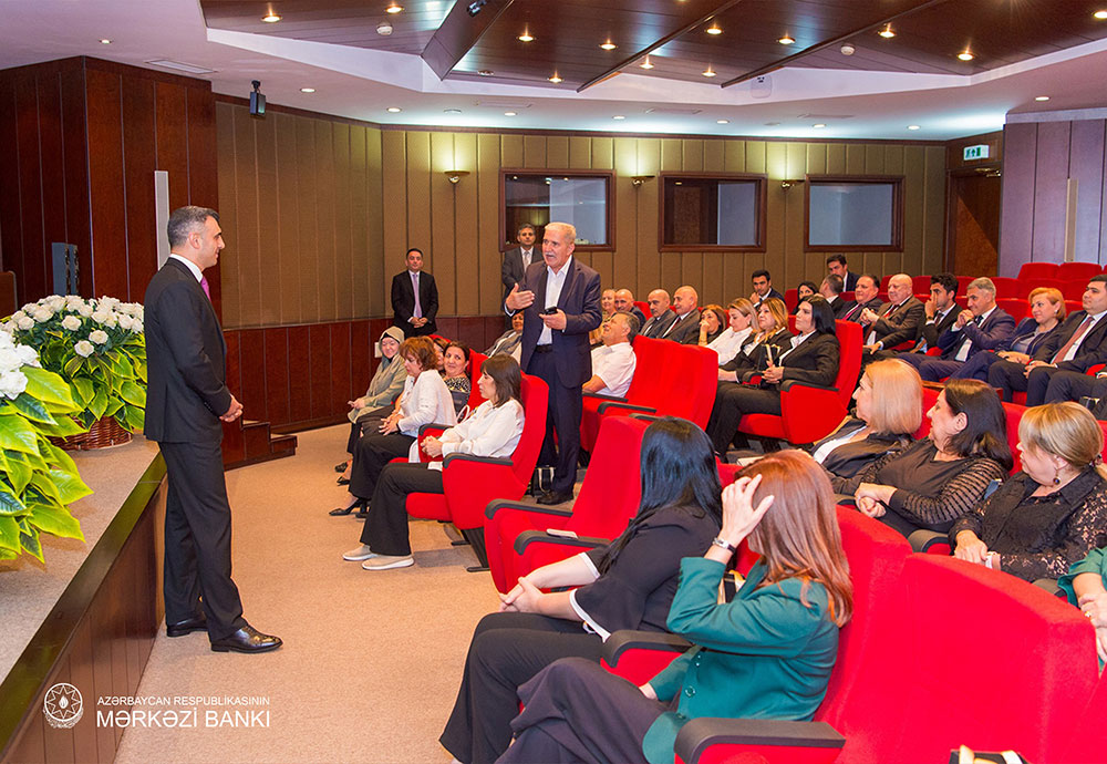 Mərkəzi Bankın sədri çıxışı zamanı görüşdə iştirak edən və uzun müddət Mərkəzi Bankda çalışmış əməkdaşlara təşkilatın və sektorun inkişafına verdikləri töhfəyə görə təşəkkürünü bildirib.