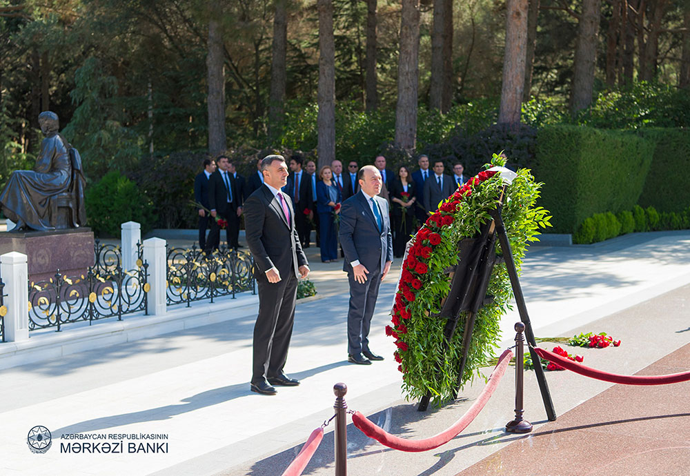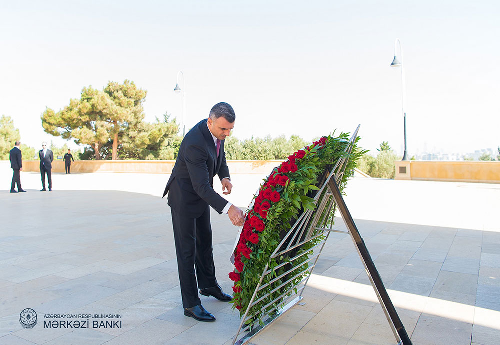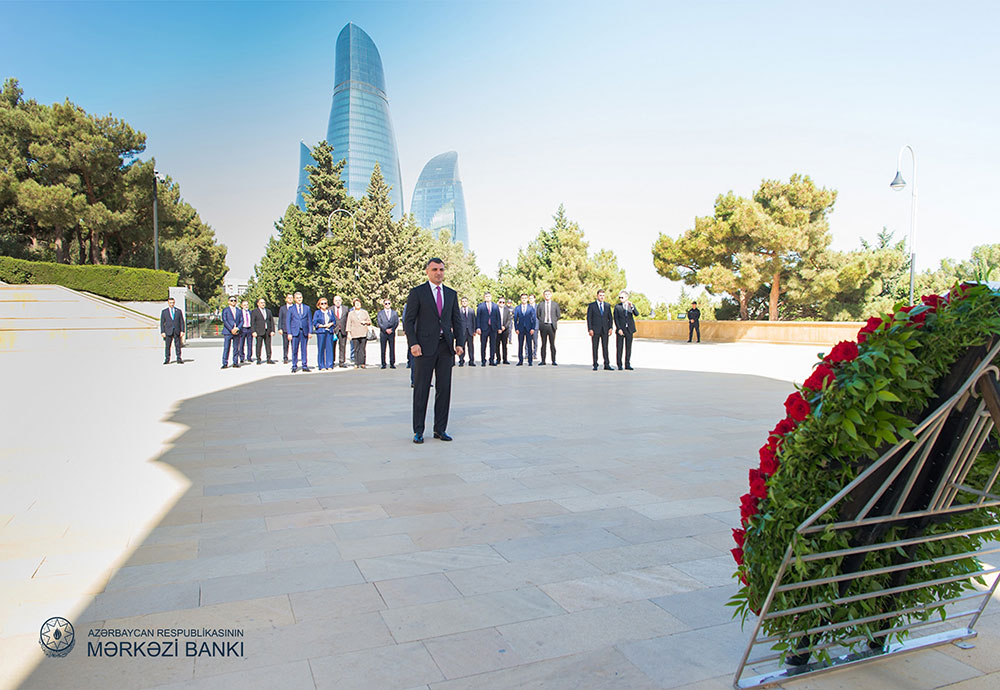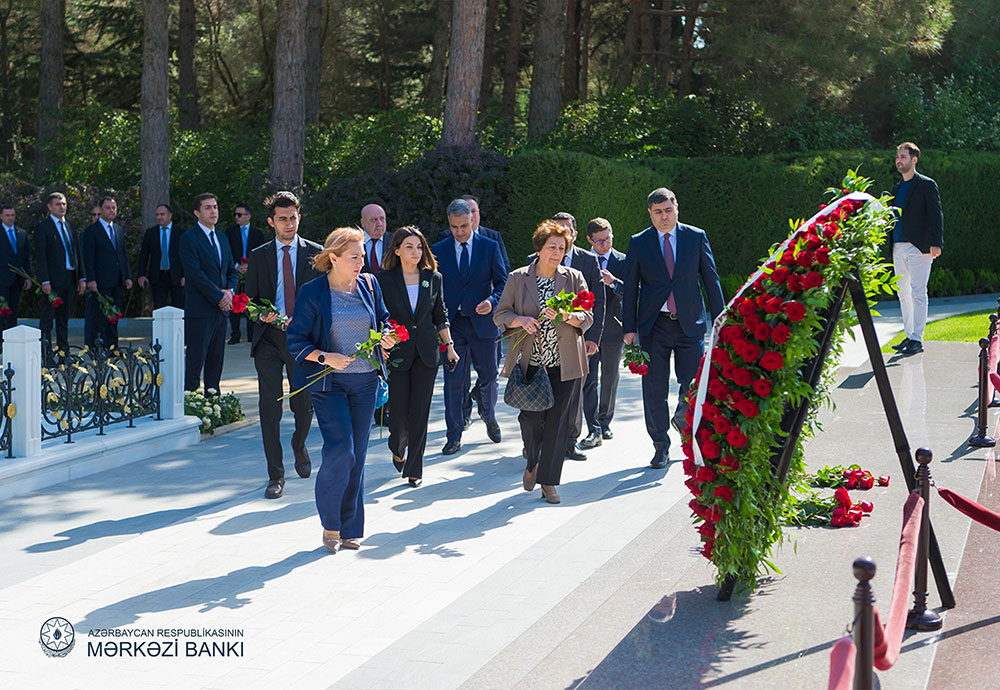 Belə ki, Mərkəzi Bankın sədri Taleh Kazımovun rəhbərliyi ilə Bankın kollektivi Fəxri xiyabanda Ümummilli lider Heydər Əliyevin məzarını ziyarət edib. Ziyarət iştirakçıları tərəfindən Ulu öndərin məzarı üzərinə gül dəstələri qoyulub, xatirəsi hörmətlə yad edilib.