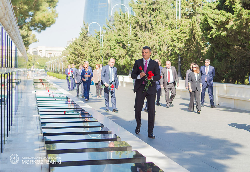 Sonra Bankın rəhbərliyi və kollektivi tərəfindən Şəhidlər xiyabanında vətənimizin müstəqilliyi, xalqımızın azadlığı uğrunda şəhid olmuş həmvətənlərimizin məzarlarına və “Əbədi Məşəl” abidəsinin önünə gül dəstələri düzülüb və əziz xatirələri yad edilib.