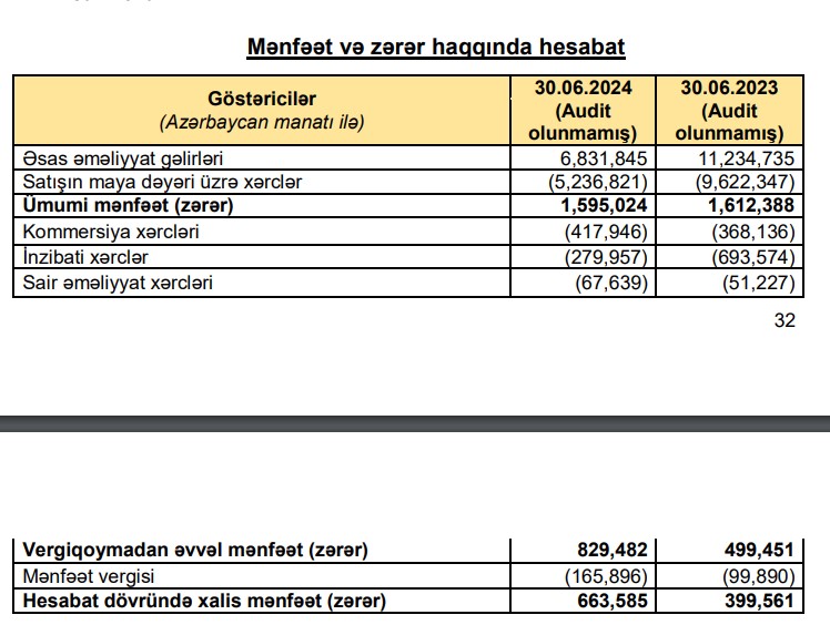 “Caspian Equipment Company” 2024-cü ilin birinci yarısını (yanvar-iyun) 664 min manat xalis mənfəət ilə başa vurub. Halbuki şirkət ötən ilin eyni dövrünü 400 min manat xalis mənfəət ilə bağlamışdı. 2023-cü ilin 1-ci yarısında “Caspian Equipment Company”nin gəliri (satış) 11 milyon 235 mim min manat ikən, 2024-cü ilin birinci yarısında 6 milyon 832 min manata düşüb.