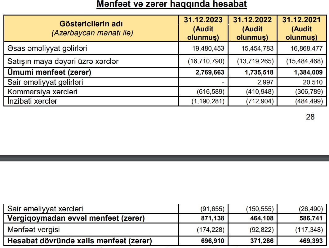 Marja.az xəbər verir ki, "Caspian Equipment Company”nin əsas əməliyyat gəlirləri (satış) 2022-ci ildə 15 milyon 455 min manat ikən, 2023-cü ildə 19 milyon 480 min manat təşkil edib (4 milyon 26 min manat və ya 26% artıb).