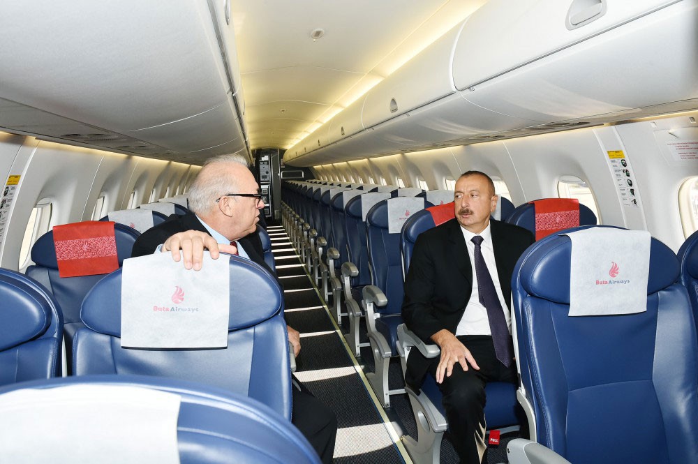 Prezident "Buta Airways”in Bakıya gətirilən ilk təyyarəsilə tanış oldu