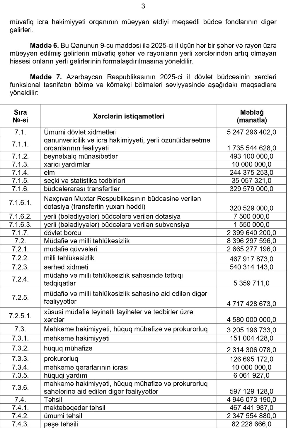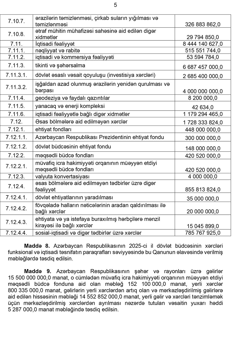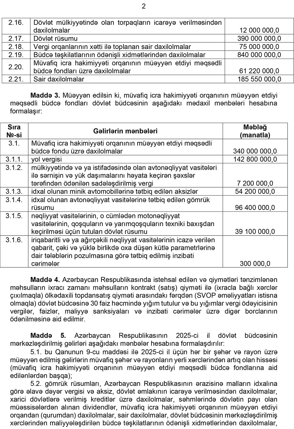 Oktyabrın 15-də Azərbaycan Respublikasının Prezidenti İlham Əliyev “Azərbaycan Respublikasının 2025-ci il dövlət büdcəsi haqqında” Qanun layihəsini Azərbaycan Respublikasının Milli Məclisin müzakirəsinə təqdim edilib.