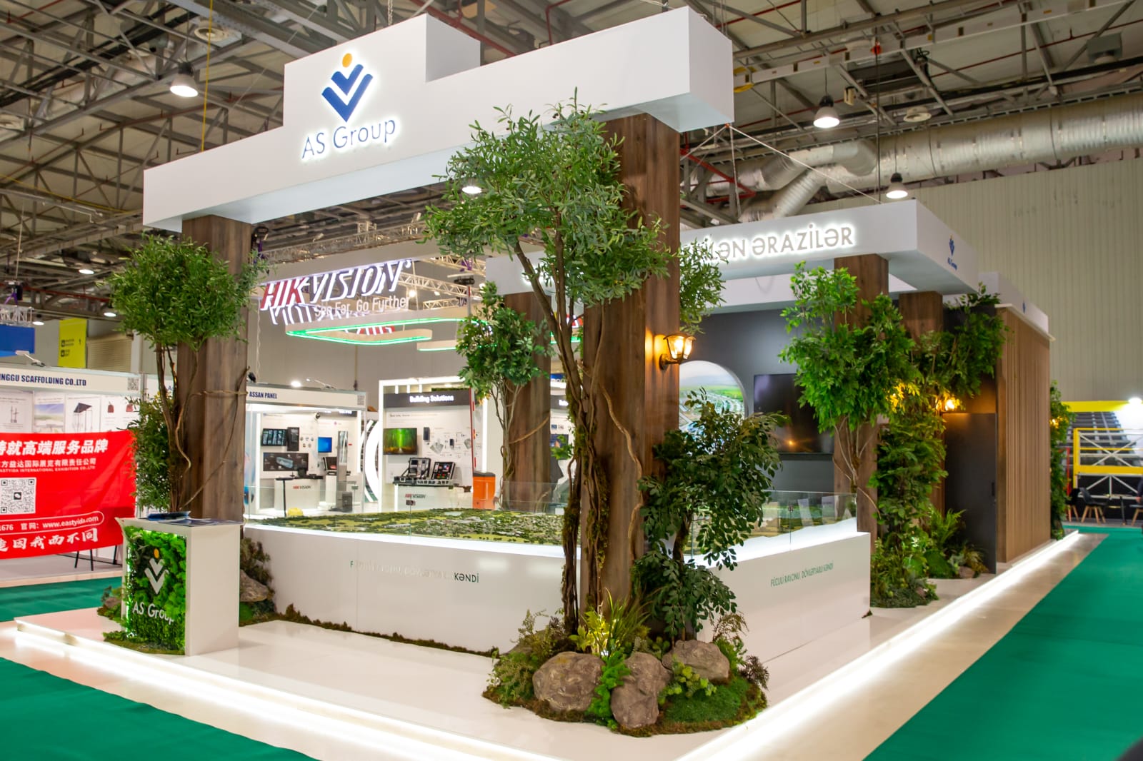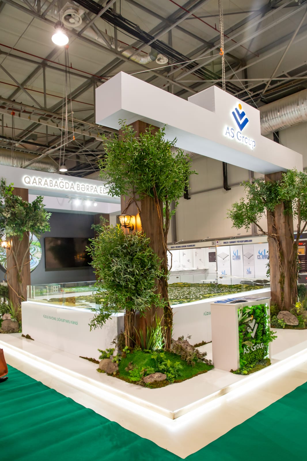 Sərgidə şirkət “Qarabağda bərpa edilən ərazilər” və “Kommersiya layihələrimiz” adlı iki hissədən ibarət stendlə iştirak edir. Stendin “Qarabağda bərpa edilən ərazilər” hissəsində “AS Group” işğaldan azad edilən torpaqlarımızda ilk bərpa edilən ərazi sayılan Zəngilan rayonun Ağalı kəndinin və Füzuli rayonunun Dövlətyarlı kəndinin maketlərini, bu layihələrə aid foto və video materiallarını nümayiş etdirir.