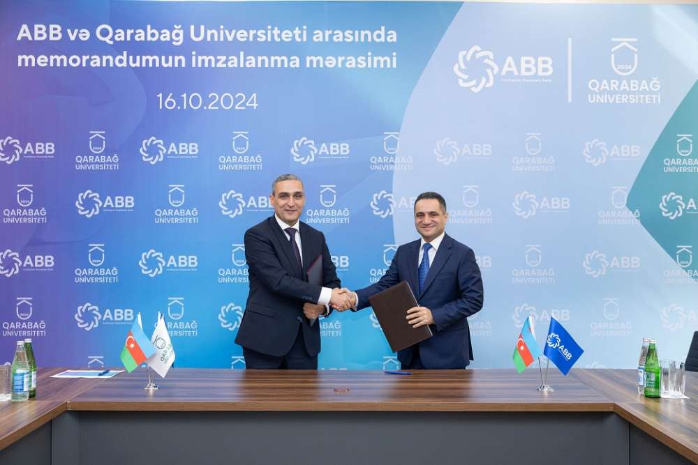 ABB və Qarabağ Universiteti arasında əməkdaşlıq haqqında memorandum imzalanıb. Qarabağ Universitetində keçirilən tədbirdə sənədi ABB-nin İdarə Heyətinin sədri Abbas İbrahimov və Qarabağ Universitetinin rektoru Şahin Bayramov imzalayıb.