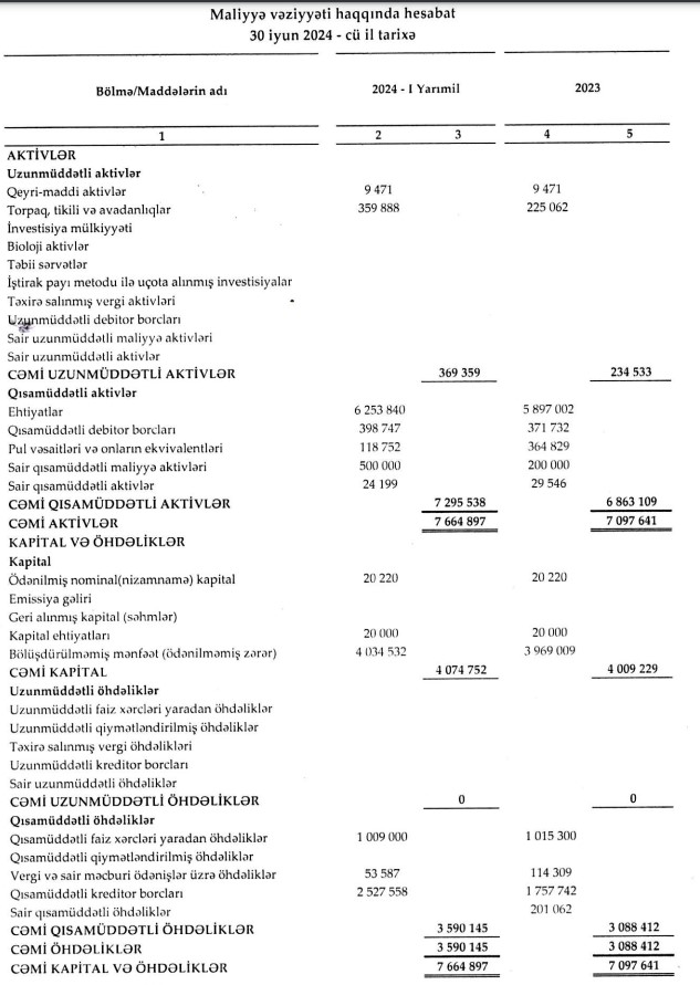 3 milyon manatlıq satışdan 66 min manat xeyir qalıb