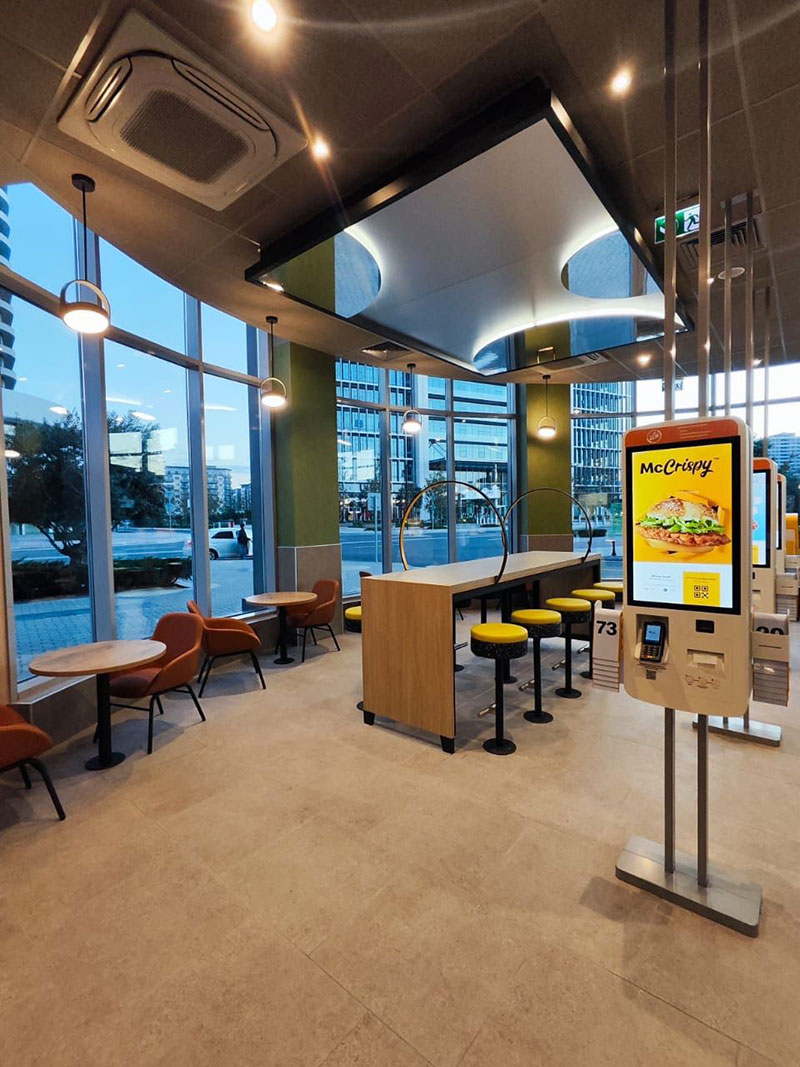Sifarişlərinizi istər zalda əyləşib "Table Servis" xidməti ilə, istərsə də "McDelivery" satış kanalı ilə verə bilər, əlavə olaraq ə"McCafe" ləzzətlərinin dadına da baxa bilərsiniz.