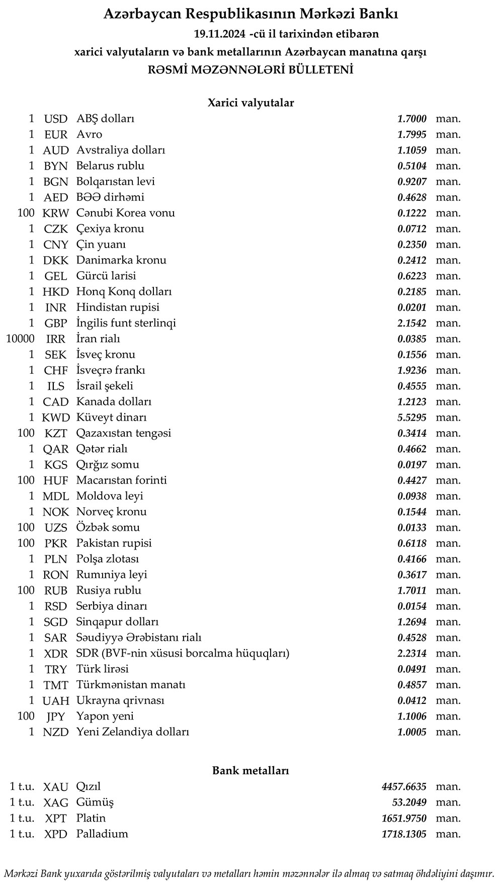Dolların sabah üçün rəsmi məzənnəsi müəyyən olunub
