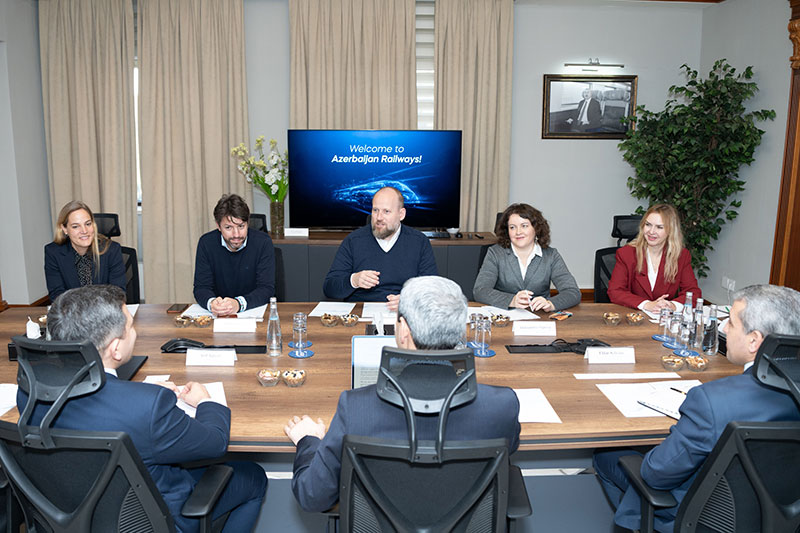 “Azərbaycan Dəmir Yolları” QSC-nin (ADY) sədri Rövşən Rüstəmov “Rhenus Group” şirkətinin baş icraçı direktoru Tobias Bartzın rəhbərlik etdiyi nümayəndə ilə görüşdə Azərbaycanda dəmiryol infrastrukturunun modernləşdirilməsi, elektrikləşdirilməsi, ölkəmizdən keçən beynəlxalq dəhlizlər üzrə dəmir yollarının ötürücülük imkanlarının artırılması ilə bağlı görülən işlərdən danışıb.