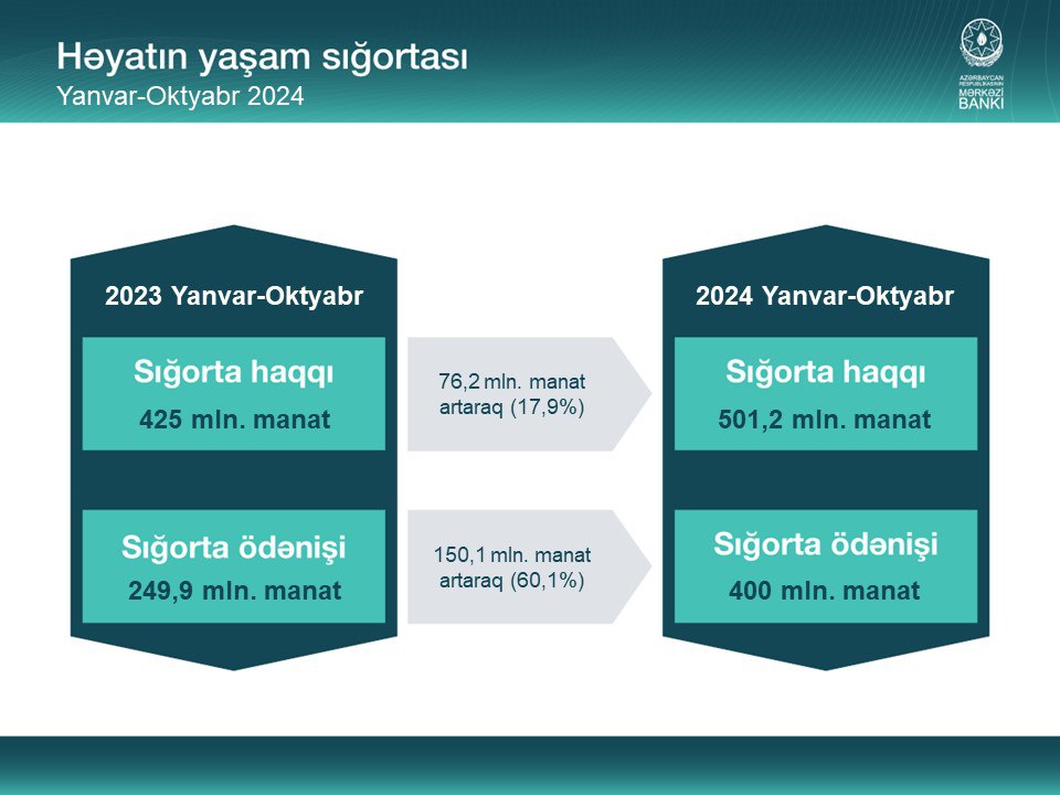 Hesabat dövründə sığorta şirkətlərinin həyata keçirdikləri ödənişlərin məbləği isə 622 milyon 301 min manat təşkil edib. Bu isə illik müqayisədə 36,8 % çoxdur.