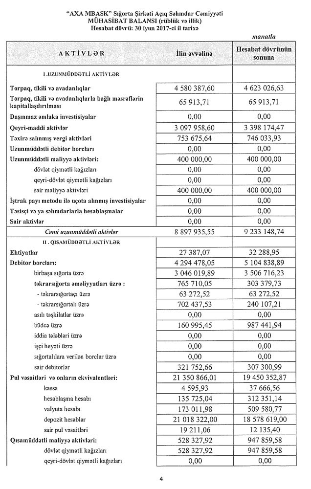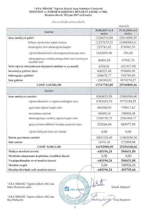 “AxaMbask” sığorta şirkəti 2017-ci ilin birinci yarısını 445,2 min manat zərər ilə başa vurub.