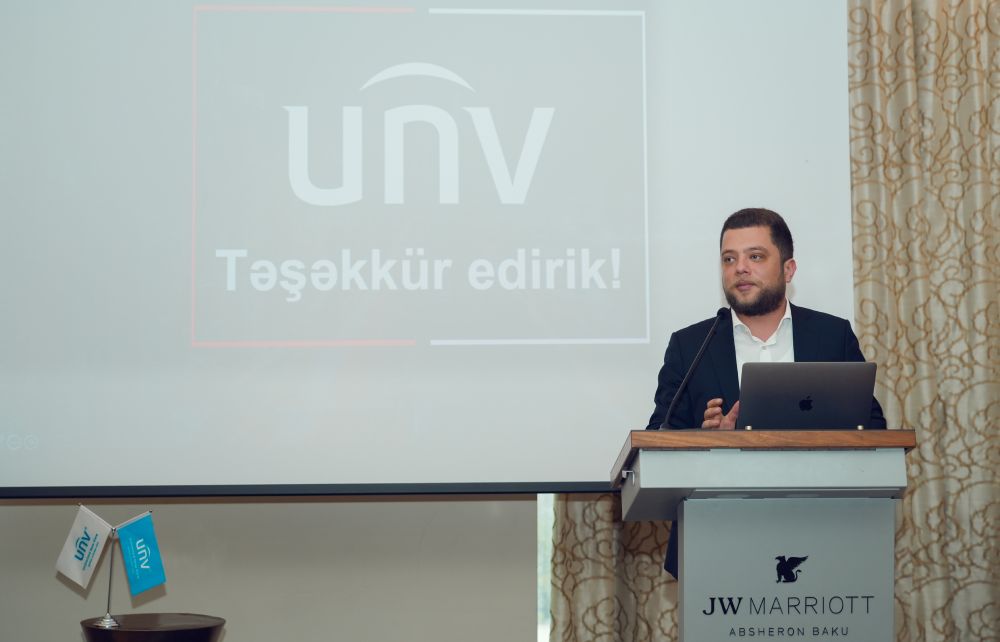 Seminarın əsas hissəsi Acom şirkətinin kommersiya direktoru Fərid Quliyevin çıxışı ilə başlayıb. O, UNV brendinə aid yeni məhsullar – IP kameralar, NVR-lər və digər innovativ məhsullar barədə təqdimat edib.