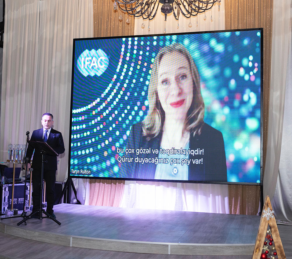 APFM-in üzv olduğu IFAC- Beynəlxalq Mühasiblər Federasiyasının rəhbərliyi tərəfindən göndərilmiş təbrik videoçarxı nümayiş etdirilib.
