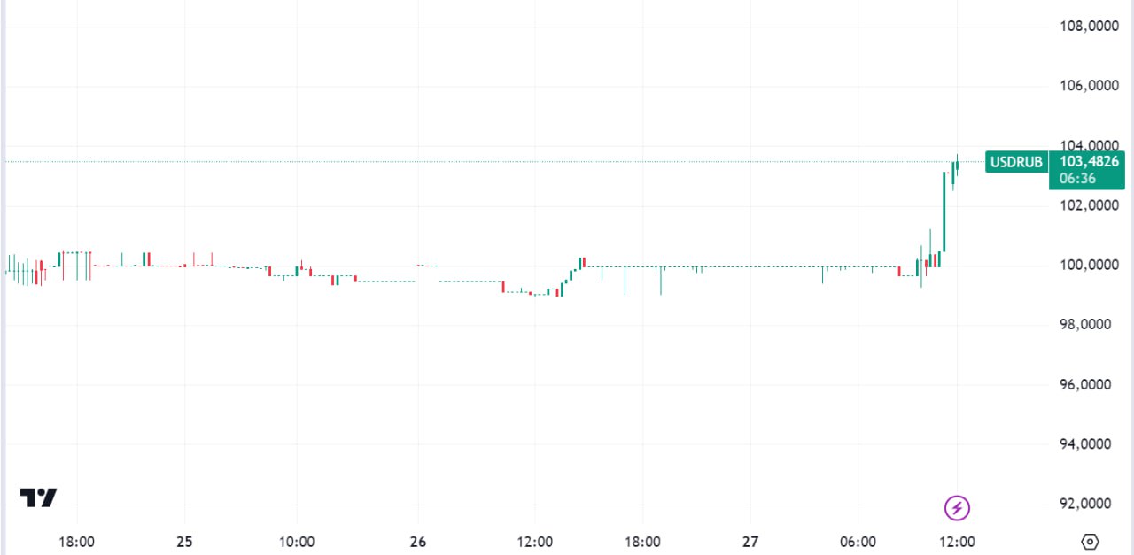 Bakı vaxtı ilə saat 13:00-da Forex ICE beynəlxalq valyuta bazarında dollar/rubl məzənnəsi 3,49% artaraq 103,476 rubl səviyyəsinə çatıb.