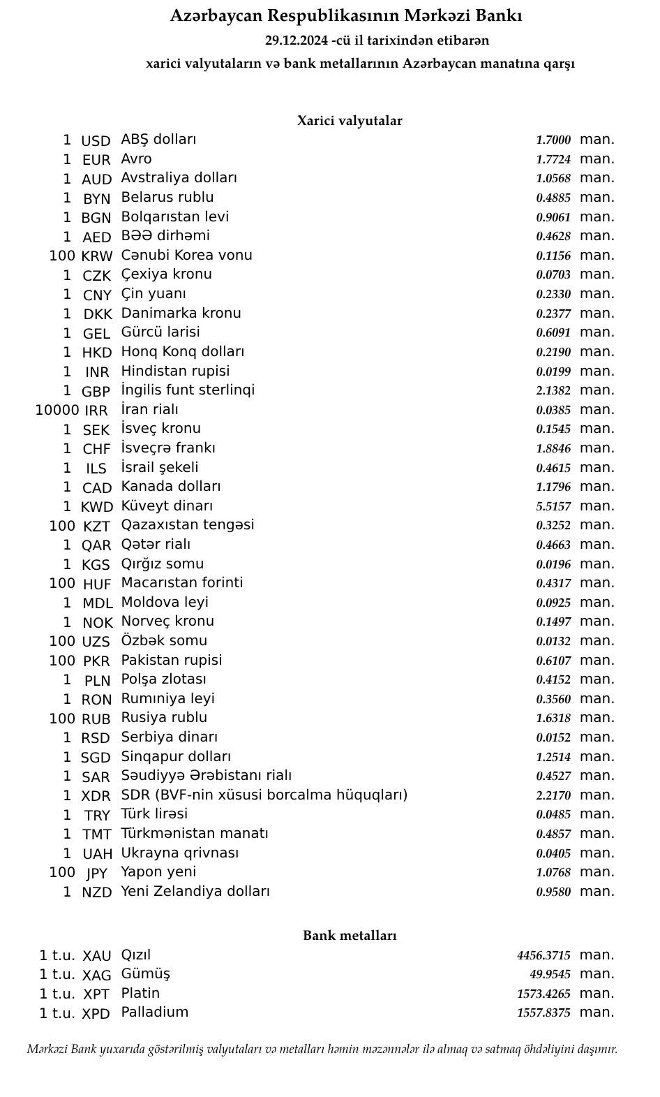 Dolların sabah üçün rəsmi məzənnəsi müəyyən olunub