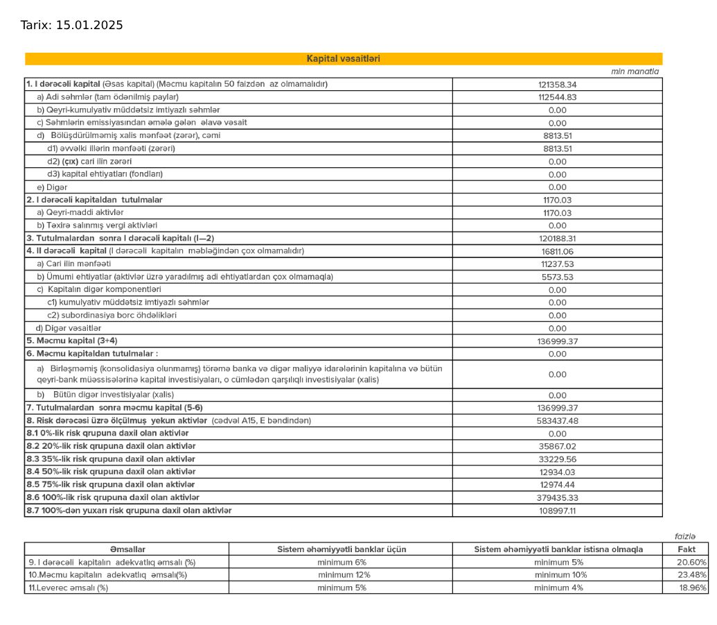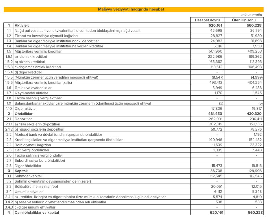 Bankın depozit portfeli 32 milyon manat artaraq 230 milyondan 262 milyon manata qalxıb. Belə ki, təkcə fiziki şəxslər üzrə depozit portfeli əvvəlki ilin analoji dövrü ilə müqayisədə 33% artım göstərərək 152 milyondan 202 milyona yüksəlib.