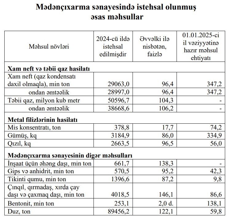 2024-cü ildə Azərbaycanda 2 min 663,5 kq qızıl istehsal edilib.