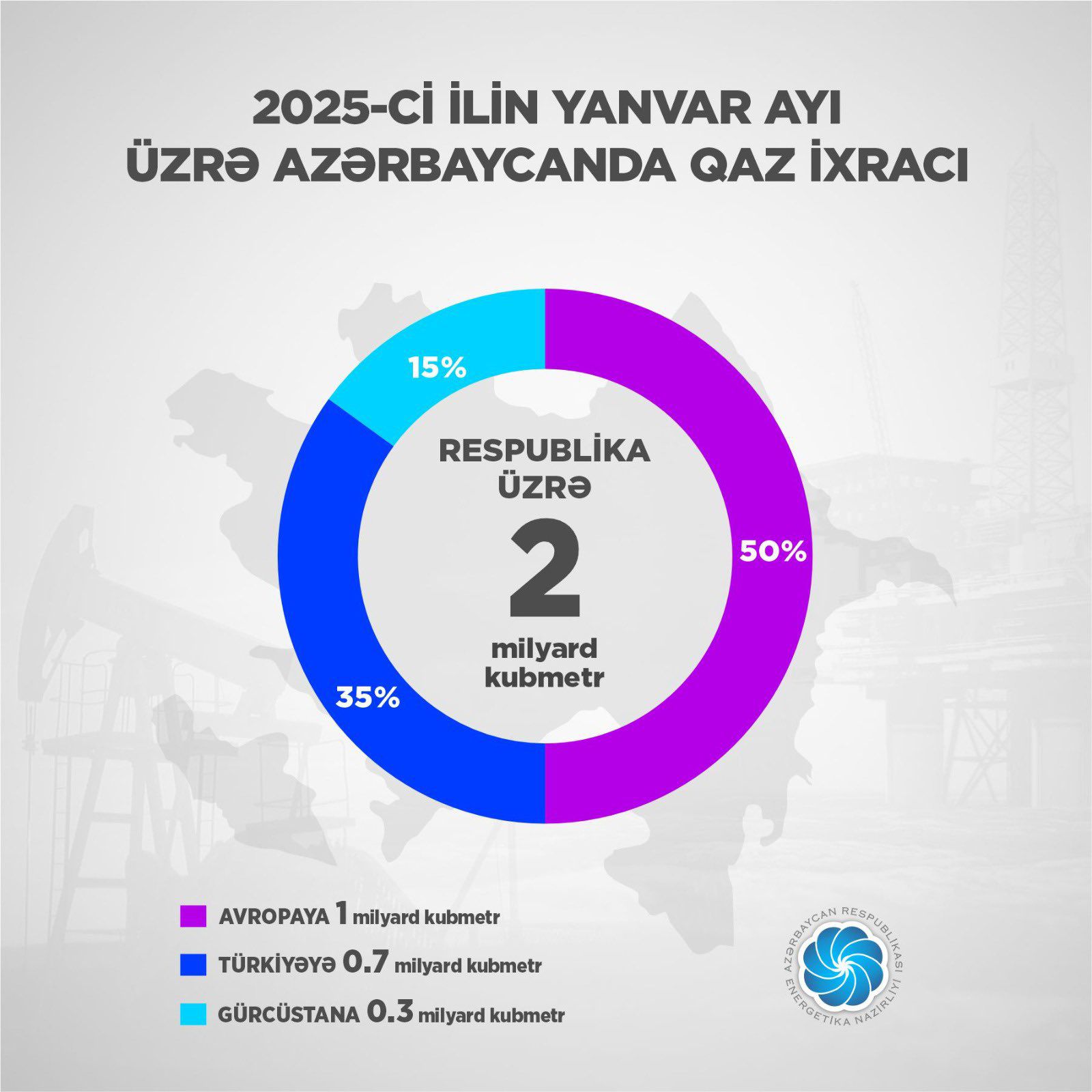 Yanvar ayında təxminən Avropaya 1 mlrd.m3, Türkiyəyə 0,7 mlrd.m3, Gürcüstana isə 0,3 mlrd.m3 qaz ixrac olunub.