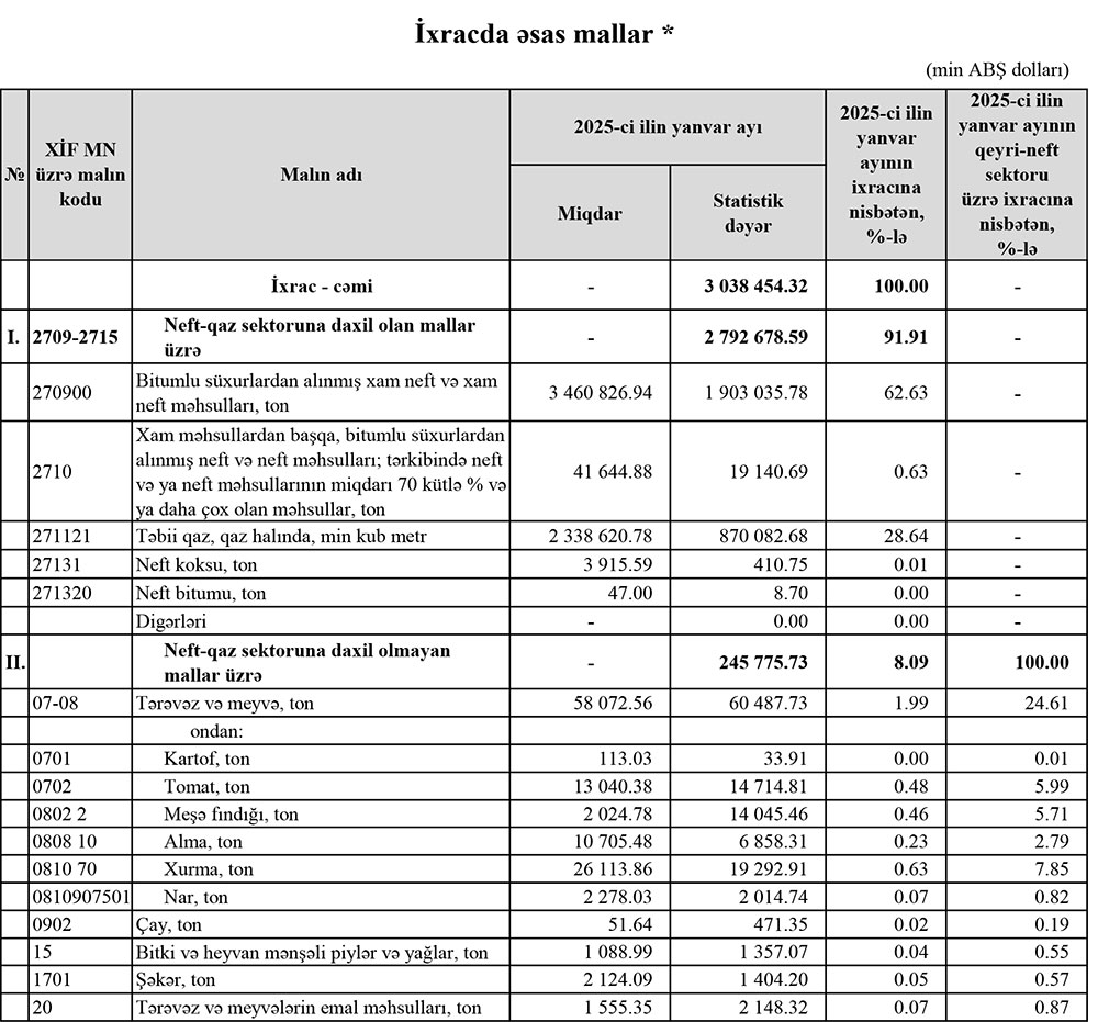 2025-ci ilin yanvar ayında Azərbaycanın ən çox ixrac və idxal etdiyi mallar.