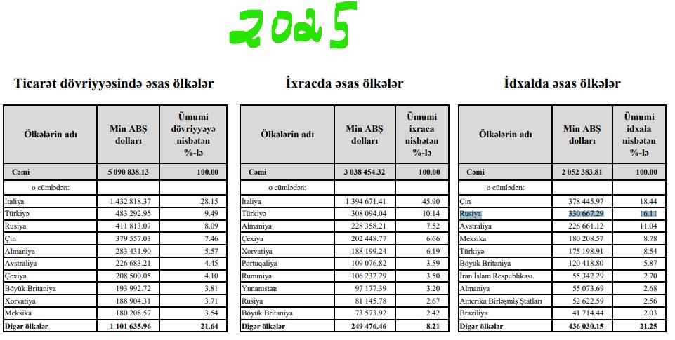 Azərbaycanın Rusiyadan mal alışı kəsin artıb