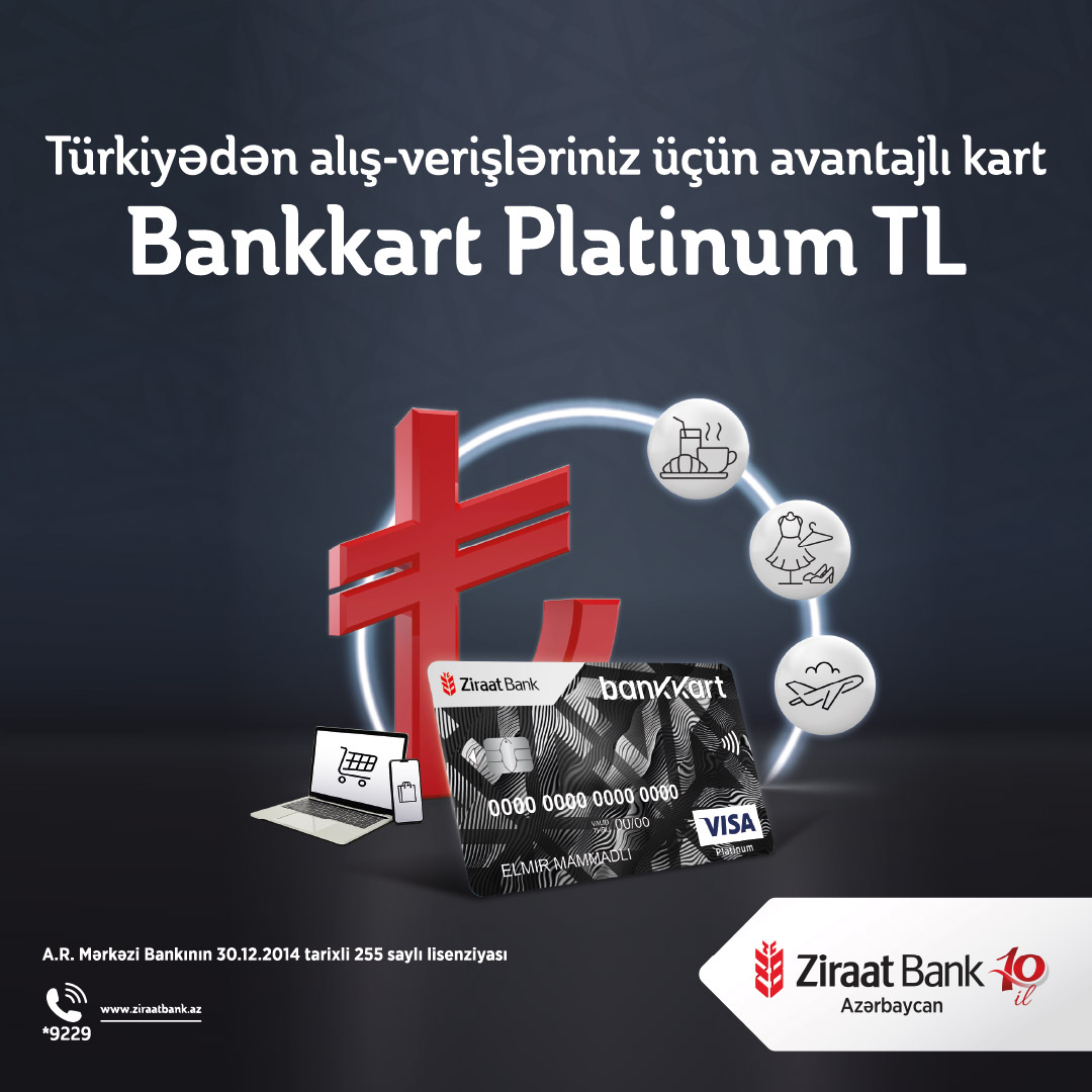 Bu kartın sahibləri bütün ödənişlərini birbaşa Türk Lirəsi ilə həyata keçirə biləcək və bununla da əlavə konvertasiya komissiyalarından azad olacaqlar.(®) Ziraat Bank Azərbaycan, müştərilərinə daha geniş imkanlar təqdim etmək üçün Türk Lirəsi valyutasında Bankkart Visa Platinum kartını istifadəyə təqdim edib.