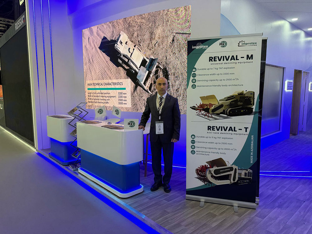 Improtex Group sərgidə Azərbaycanda istehsal olunan “Revival” minatəmizləmə maşınlarını təqdim edib. Şirkət, qonaqlara və beynəlxalq tərəfdaşlara innovativ texnologiyalar əsasında hazırlanmış minatəmizləmə texnikaları barədə ətraflı məlumat verib. Stenddə nümayiş olunan “Revival M” və “Revival T” minatəmizləyən maşınları, onların texniki imkanları və real əməliyyat sahələrində effektivliyi barədə geniş təqdimat keçirilib.
