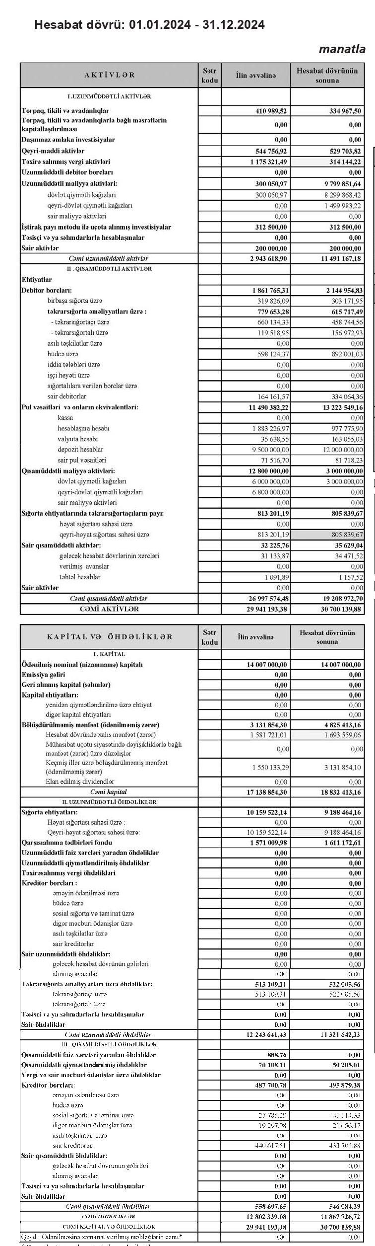 "AzSığorta" ASC 2024-cü ili 1 milyon 694 min manat xalis mənfəət ilə başa vurub. Şirkət 2023-cü ili 1 milyon 582 min manat xalis mənfəət ilə bağlamışdı. Beləliklə, ötən il "AzSığorta" ASC-nin xalis mənfəəti 112 min manat və ya 7,2% artıb.