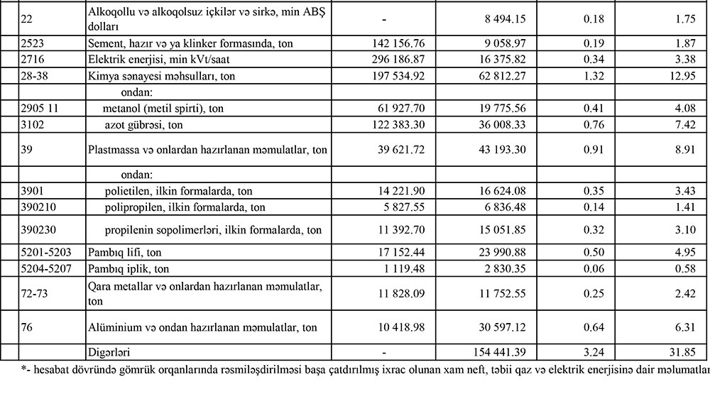 Marja.az Dövlət Gömrük Komitəsinə istinadən siayhını təqdim edir.
