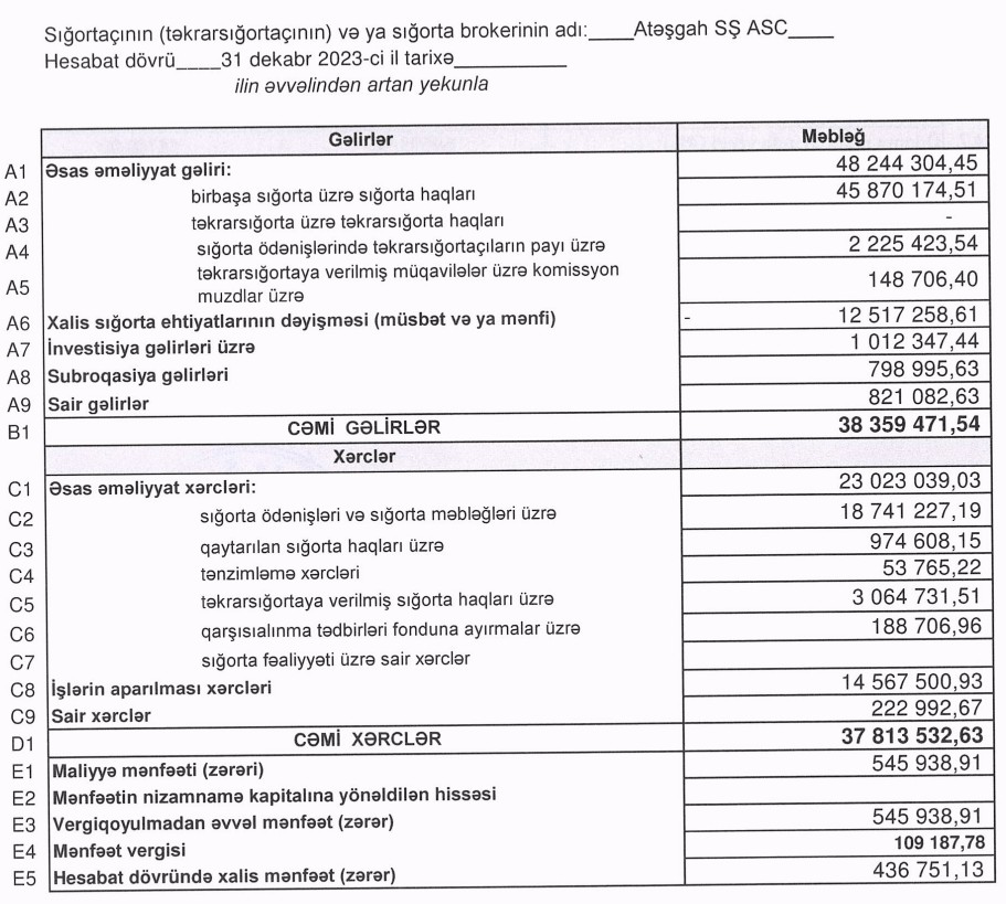 Gəlirlərdəki artım xərclərdəki artımdan daha yüksək məbləğdə olduğu üçün, ötən il "Atəşgah Sığorta Şirkəti"nin xalis mənfəəti daha böyük məbləğdə olub.
