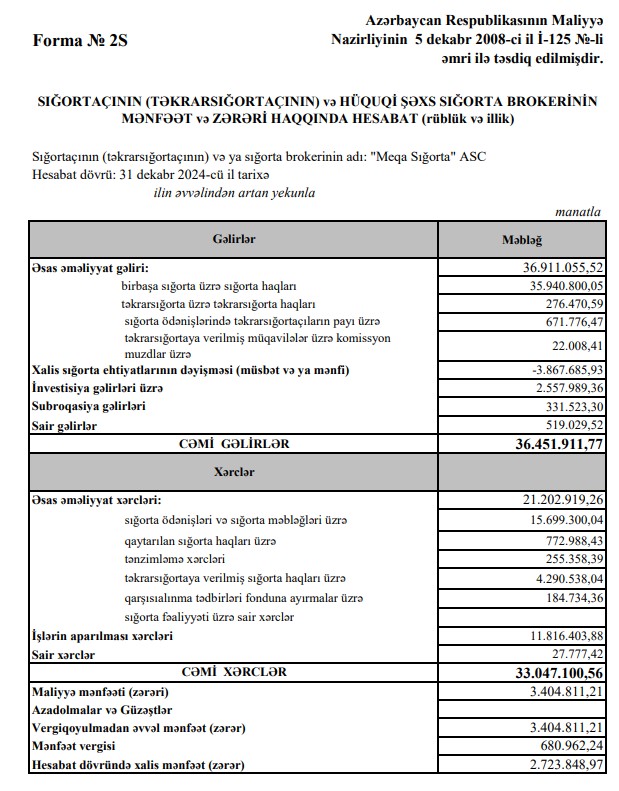 "Meqa Sığorta"nın xalis mənfəəti artıb - MALİYYƏ VƏZİYYƏTİ