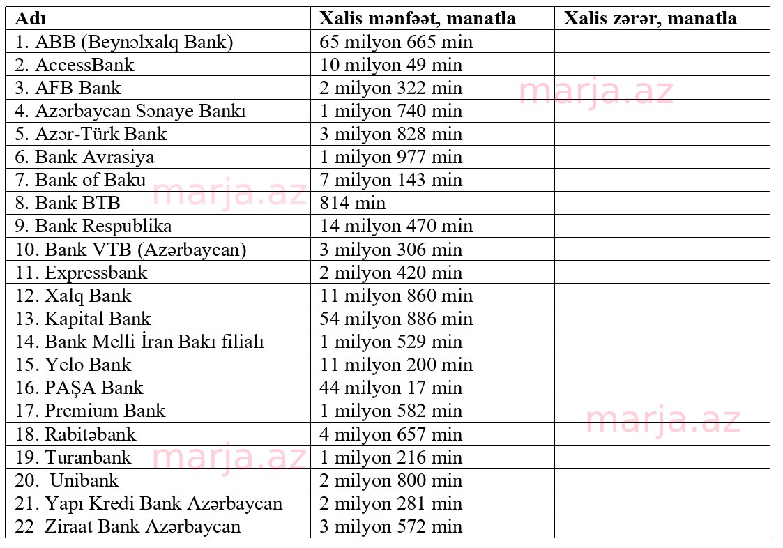 Marja.az xəbər verir ki, 22 bankın hamısı ilk rübü xalis mənfəətlə başa vurub.