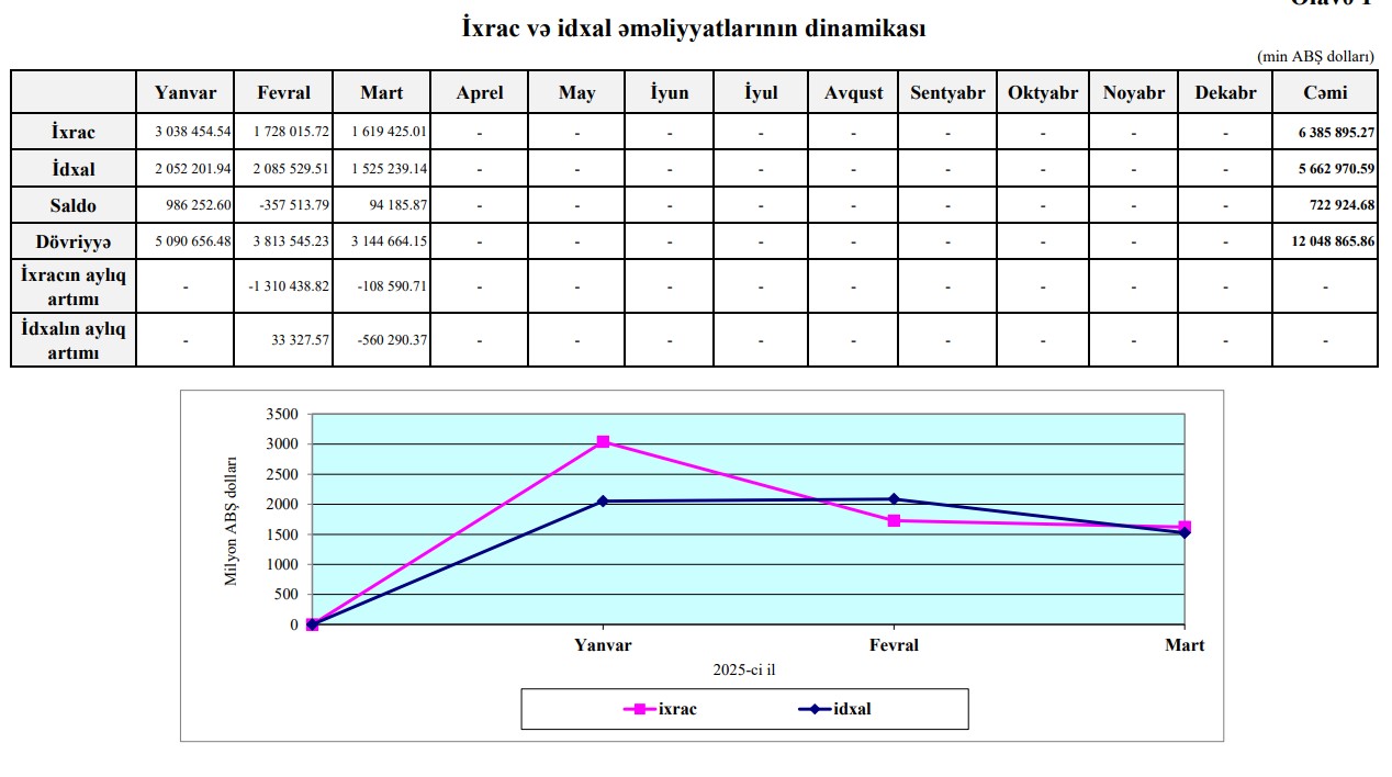 Yanvarda saldo müsbət 986 milyon 252 min dollar, fevralda isə mənfi 357 milyon 514 min dollar (kəsir) təşkil etmişdi.