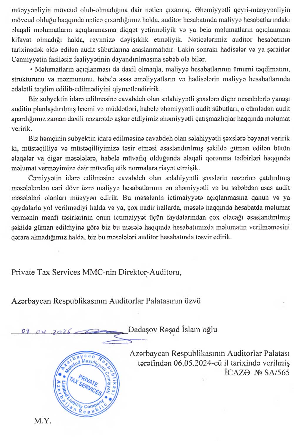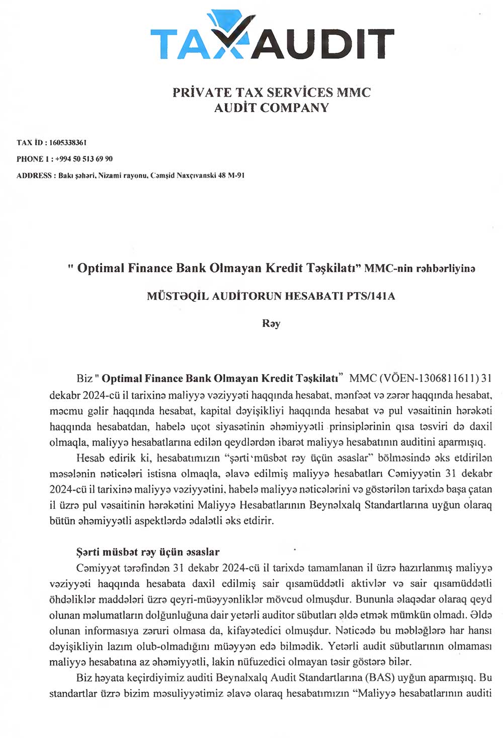 "OPTİMAL FİNANCE BANK OLMAYAN KREDİT TƏŞKİLATI" Məhdud Məsuliyyətli Cəmiyyətinin 31 dekabr 2024-cü il tarixində bitən il üzrə maliyyə hesabatları - ƏTRAFLI