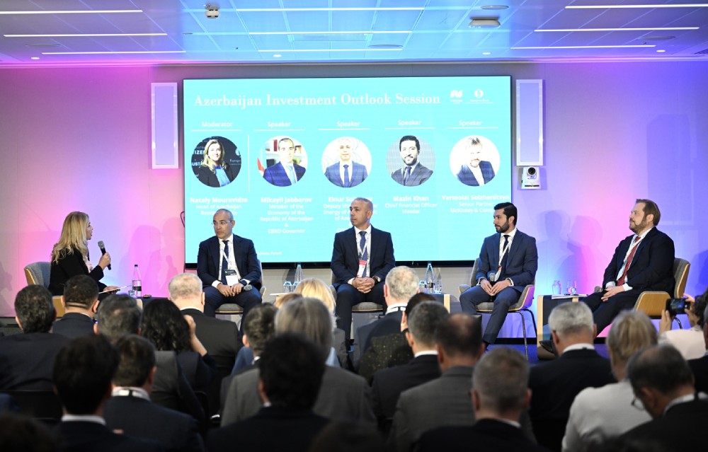 Avropa Yenidənqurma və İnkişaf Bankının (AYİB) Azərbaycan üzrə rəhbəri Natali Mouravidzenin moderatorluğu ilə keçirilən sessiyada iqtisadiyyat naziri Mikayıl Cabbarov, energetika nazirinin müavini Elnur Sultanov, “Masdar” şirkətinin baş maliyyə direktoru Mazin Xan, "McKinsey & Company" şirkətinin baş tərəfdaşı Yermolay Soljenitsin regional əməkdaşlıq, yaşıl enerji keçidi, dövlət-özəl sektor tərəfdaşlığı və digər məsələlər barədə sualları cavablandırıblar.