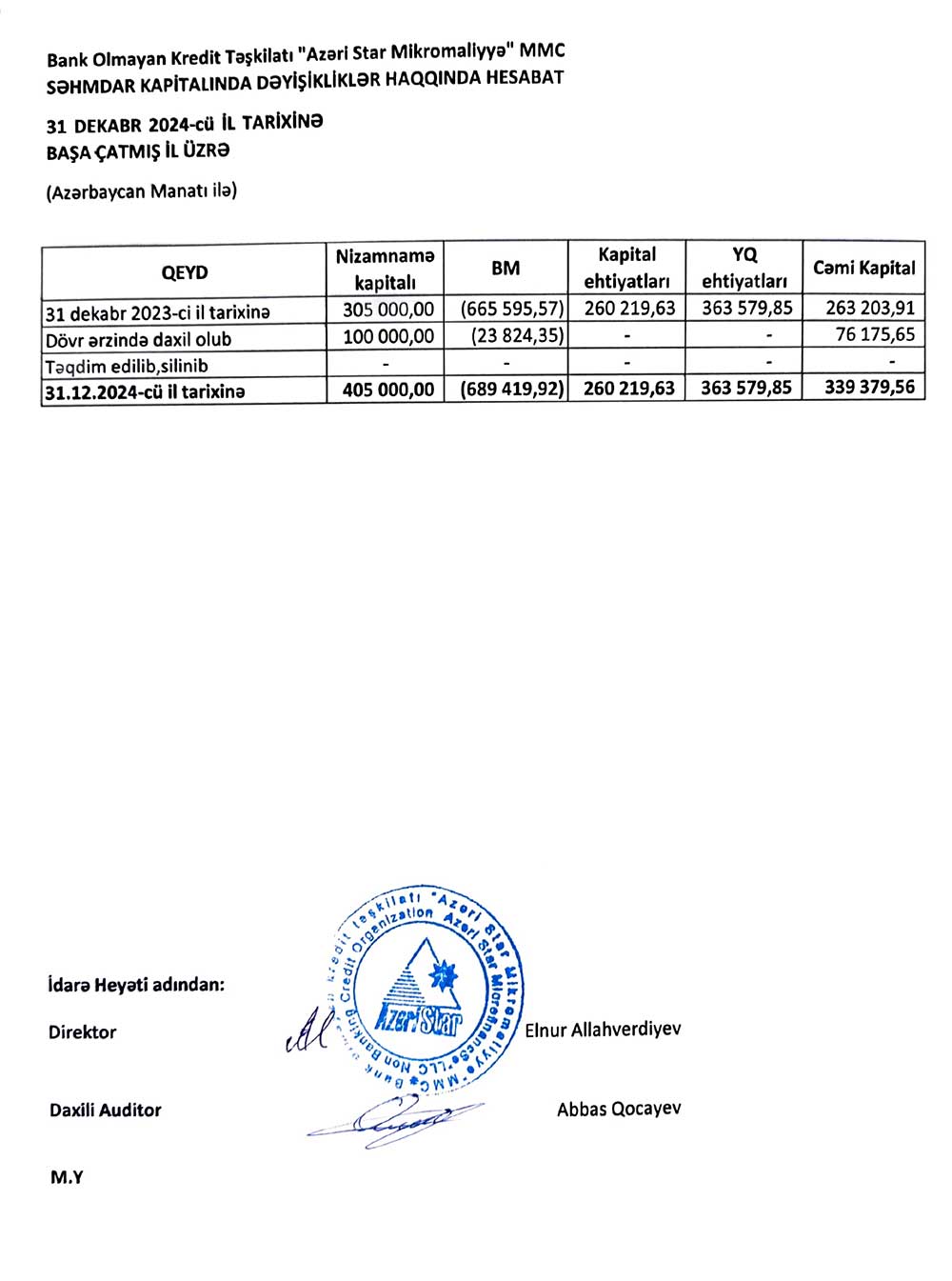 Bank Olmayan Kredit Təşkilatı "Azəri-Star Mikromaliyyə" MMC-nin 31 dekbr 2024-cü il tarixində başa çatmış il üzrə maliyyə hesabatları - ƏTRAFLI